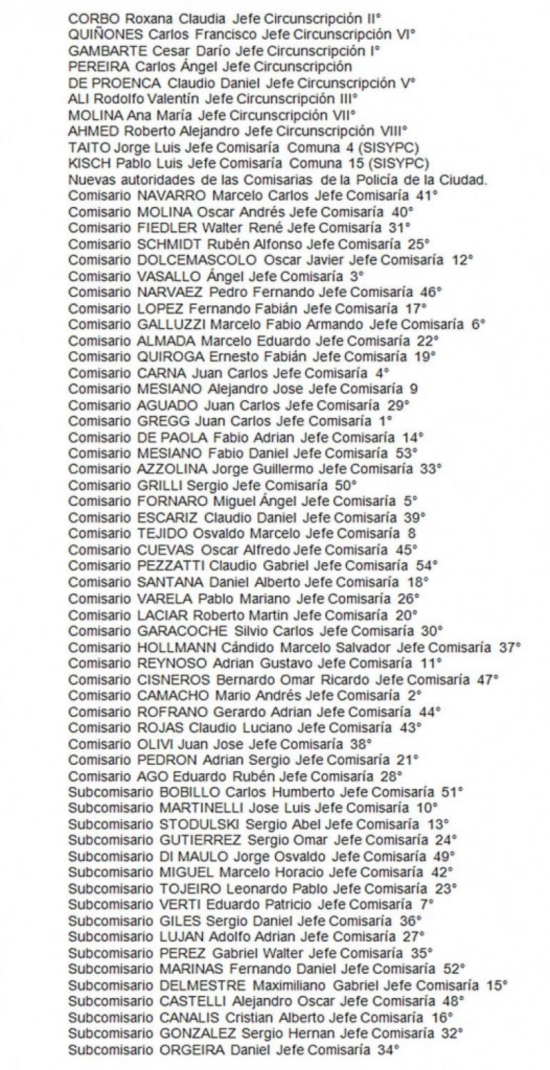 Quien queda afuera de esta serie de cambios es el nuevo comisario José Pedro Potocar. Éste continuará en su cargo debido a que asumió en la comisaría del barrio de Flores hace solo tres semanas, tras las protestas de vecinos por el crimen del joven Brian Aguinaco que desembocaron en la remoción de su predecesor.