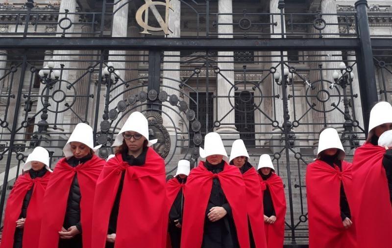 Mientras comenzaban las exposiciones a favor y en contra del aborto legal en el Senado, frente al Congreso se concentraban mujeres cabizbajas y vestidas de bordó. Una iniciativa por los derechos de las mujeres, inspirada en la emblemática novela de Margaret Atwood.