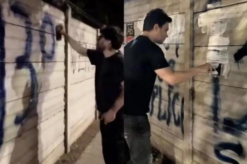 Ramiro Marra tapó un graffiti de Grabois en un nuevo acto negacionista