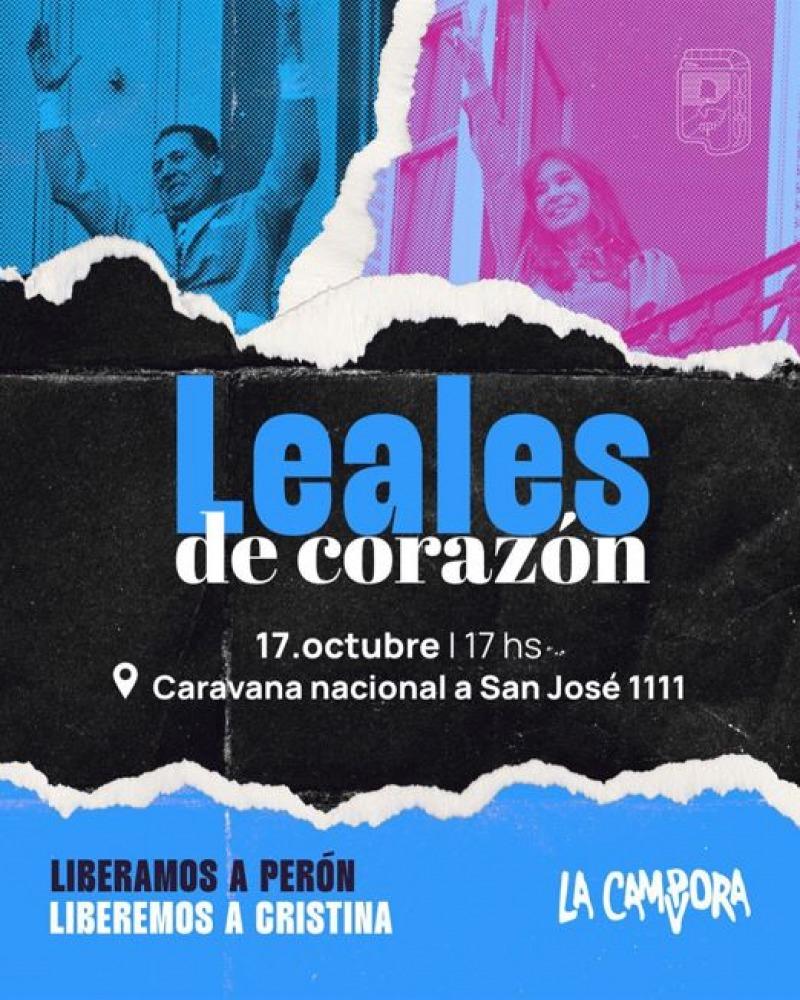 Bajo la consignas "Liberamos a Perón. Liberemos a Cristina", la Cámpora convocó a la militancia a participar desde su cuenta oficial de X (ExTwitter) y el recorrido será caminando hasta el departamento ubicado en en San José 1111 de la expresidenta donde cumple una condena por la causa Vialidad.