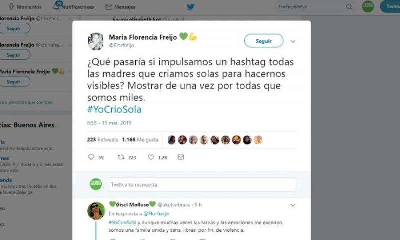 Luego de una pelea entre Jimena Baron y Daniel Osvaldo, la periodista Florencia Freijo publicó en su twitter su apoyo a la actriz por medio... 15/03/2019 FEMINISMOS #YoCríoSola, el hashtag que usan miles de mujeres para denunciar a padres que abandonaron a sus hijes